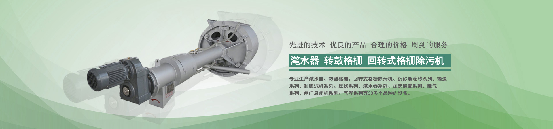 本公司目前專業(yè)生產(chǎn)轉(zhuǎn)鼓式精密過濾器、轉(zhuǎn)鼓格柵、回轉(zhuǎn)式格柵除污機(jī)、沉砂池除砂系列、輸送系列、刮吸泥機(jī)系列、壓濾系列、潷水器系列、加藥裝置系列、曝氣系列、閘門啟閉機(jī)系列、氣浮系列、曝氣器系列、填料系列等30多個品種的設(shè)備...